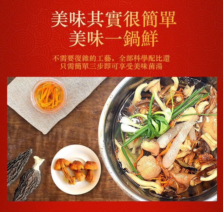 7分鐘前自然無硫熏,無添加食用更安心! [秋冬 季節必備的七彩野生菌湯包x10=NT$1150 ]